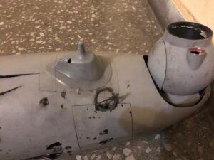 The fin assembly in the image bears a strong resemblance to those of other munitions employed in the same incident that have been identified as M49A2 mortar projectiles modified to be delivered by UAV. (ARES)