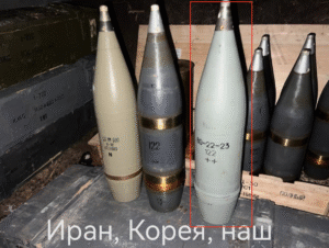 This image shows 122 mm high explosive (HE) artillery gun projectiles manufactured in three different states, L–R: Iran, North Korea, and Russia. Whilst these examples are distinct from one another—particularly in coloration, as well as the presence or absence of paint over the driving band and bourrelet—this is not always the case, and a combination of physical features and markings should be assessed before identification is made. (ARES)