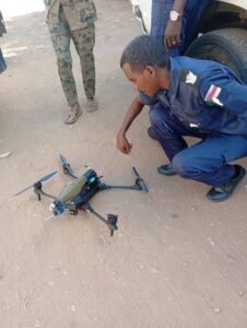 The image shows a one-way-attack (OWA) UAV that appears to have crashed, but failed to function. It consists of an FPV chassis, as well as some of the essential components required for flight and the explosive charge (purple container). The initiator and other parts relevant to both flight and the munition’s function are not visible. This appears to be craft-produced ‘sacrificial’ UAV. (ARES)