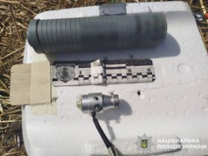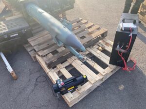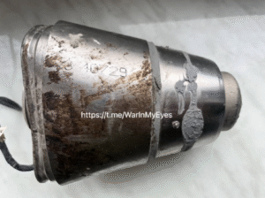This image shows the BSF-50, one of several warheads developed by Russia for the Shahed-136/Geran-2 to replace the original Shahed-136 warhead designed by Iran. The BSF-50 is a high explosive warhead with a fragmentation effect. (ARES)