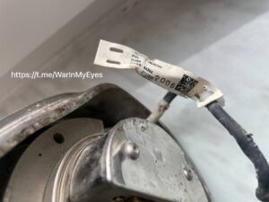 This remnant shows a munition component marked with the CAGE Code for a sub-contractor who produced part of a larger munition. “64344” is the code for Unique Electronics Inc., a known sub-contractor working on Lockheed Martin’s GMLRS contract. One of the parts they make is the “CABLE ASSEMBLY W459“, as seen in this image. (ARES)