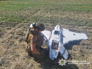 Depicted here is the MD-550 motor of a Shahed-136/Geran-2. This image was presented by Ukrainian President Zelenskyy as a fragment of the drone that reportedly hit the Chernobyl Nuclear Power Plant’s New Safe Confinement shelter. (ARES)