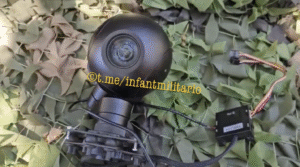This image shows an A40 Pro camera, manufactured by the Chinese company Viewpro UAV and design specifically for use in UAVs. The black box to the right of the camera is the control box which manages video output, camera control, and power. The manufacturer claims this model has a 40× optical zoom, AI detection and tracking, and 3-axis gyro-stabilisation. The company further claims that it can customise the onboard AI recognition based on “target characteristics” provided by the client. Numerous Gerberas fitted with this model of camera are known to have been recovered by Ukrainian forces, although it is by no means the only camera model in use. (ARES)