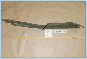 This image shows a remnant of the BSU-60 A/B tail fin. This this model of tail fin is used exclusively with AGM-88 series missiles. (ARES)