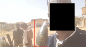 The image is of "a high-velocity shell fired from the main armament of a battle tank," Desmond Travers, former director of the Institute for International Criminal Investigations, told Airwars and AFP. "The calibre appears to be 120 mm, and the shell is fin-stabilised. The maximum effective range is five kilometers, but a skilled tank crew member should be able to hit a target the size of a car." (Airwars)