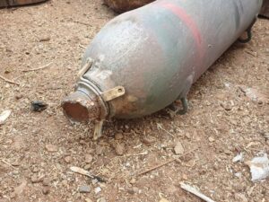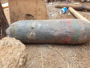 The explosive material used to fill the bomb has been removed, possibly to be repurposed in improvised explosive devices or craft-produced munitions. Unexploded ordnance is often ‘harvested’ for these purposes. (ARES)