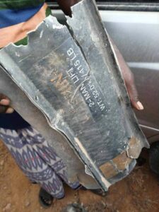 As with several other images in the OSMP database, the text on this image was added by a social media user prior to its inclusion herein. Rather than a “rocket” as described in the annotation, this image actually shows an air-delivered bomb. (ARES)