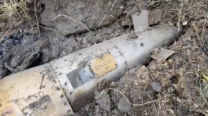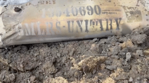 This munition remnant is marked with a manufacturer’s CAGE Code (“MFR CAGE CODE: 62313”) which indicates it was produced by Lockheed Martin. Lockheed Martin is the primary contractor that makes GMLRS missiles. (ARES)