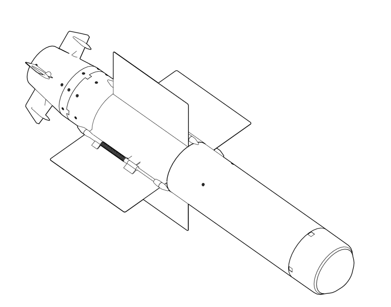 This image shows a Mikholit that was ejected from the weapons pod of an Israeli Hermes 900 drone that was downed in Iran. This Hermes 900 drone had two weapons pod, each capable of carrying 4 Mikholit bombs. (ARES)