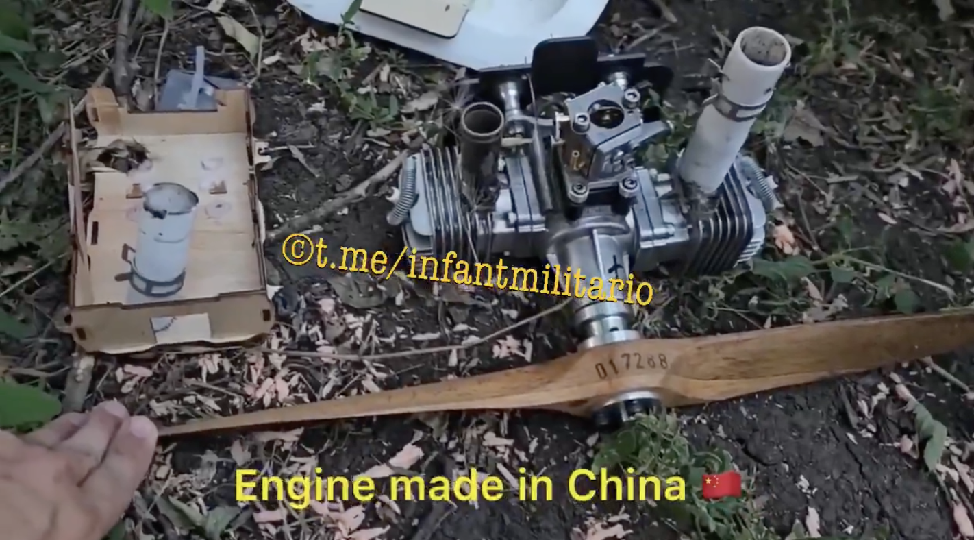 The DLE60 two-stroke petrol (gasoline) engine pictured here is the standard engine found on Gerbera UAVs. It is produced by the Chinese company Mile Haoxiang Technology Co., Ltd. and marketed specifically for use in UAVs. Although the Gerbera is manufactured in Russia, the engine and many other key components continue to be supplied from Chinese sources. (ARES)