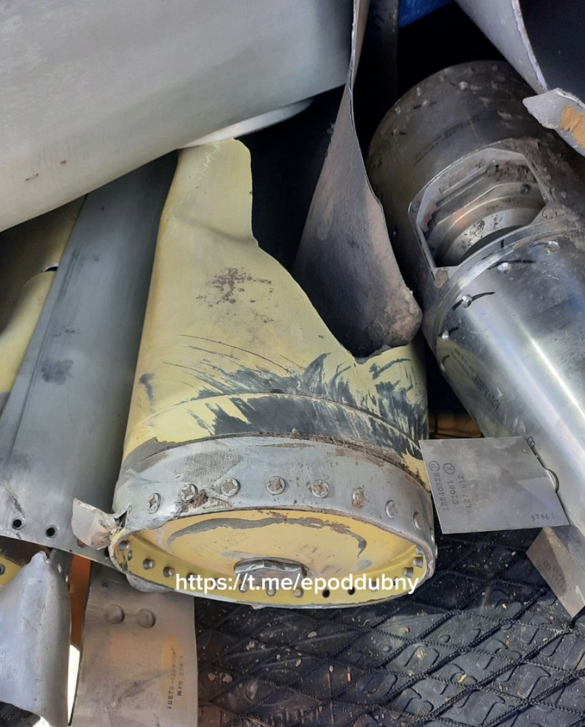 ← Return ← Prev 1258 of 1309 Next → ID OSMP1674 Date 1 June 2024 Source Poddubny |Z|O|V| edition ↗ Reported Location Russia › Belgorod Year 2024 Munition Category Rocket or Missile Functional use Cluster Munition Tentative Model GMLRS Base Colour Grey / Silver Yellow / Tan Marking Colour Black Marking Script Latin Numerical Condition Delivered Munition Part Unfunctioned Munition Mechanical Feature Rivet Holes, Screws, Rivets Guidance Guided Munition Domain Surface-to-Surface Fins Characteristic Hinged/Actuated Fins Calibre 227 mm Related Images OSMP1669 OSMP1670 OSMP1672 OSMP1673 Current:OSMP1674