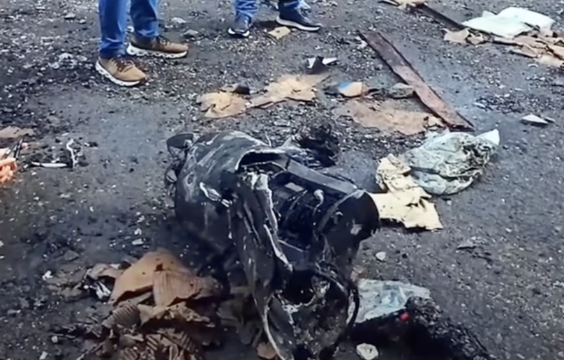 This image appears to show a remnant from either a 9M38- or 9M317-series surface-to-air missile. Positive identification of this munition cannot be made based on the imagery in this source alone; a rear control fin is visible in image but the 9M38- and 9M317-series missiles use indistinguishable rear fins. (ARES)